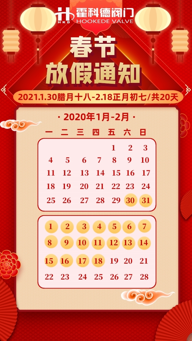 全體同事及客戶:一年一度的農(nóng)歷春節(jié)已經(jīng)臨近,在此感謝你們一年來辛勤地工作和長久的支持。因為有你們,霍科德才能砥礪前行和蒸蒸日上。在此,預祝全體同事新春愉快,萬事大吉!預祝全體客戶們吉祥如意,平安喜樂!2021年春節(jié)公司安排放假時間如下:很時期,請做好個人防護,勤洗手,多通風,少聚集,戴好口罩,遠離密集人群。衷心祝愿大家過一個歡樂、祥和的春節(jié),牛年平安!