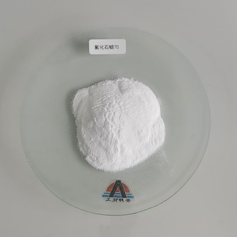 化石蠟-70或氯烴-70,外觀白色或淡黃色粉末或顆粒。化學(xué)穩(wěn)定性好。不溶于水和低級(jí)醇,溶于礦物油、芳烴、氯代烷、乙醚、丙酮、酯類;耐氧化劑、酸、堿等作用有防水性能及抗紫外線等作用;能與許多合成及天然材料有良好的相溶性,在溫度達(dá)到170攝氏度以上開始微量降解反應(yīng),脫氯化氫,生成烯烴等物質(zhì),因化學(xué)結(jié)構(gòu)幾乎完全飽和,具有優(yōu)良的阻燃性、耐化學(xué)藥品性、相溶性、耐老化性和熱穩(wěn)定性、電絕緣性。是一種綜合性能優(yōu)良的添加型阻燃劑。并兼有防潮、抗靜電、抗軟化、抗壓縮、低揮發(fā)性;有潤(rùn)滑和防滑的特點(diǎn),有增韌、增粘和抗輻射作用,有防水,防蟲和防腐蝕功能。